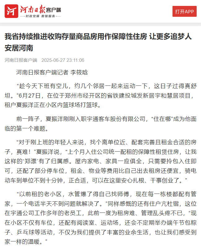 此前,省住房城鄉(xiāng)建設(shè)廳指導(dǎo)河南省鐵路建設(shè)投資集團(tuán)有限公司、河南中豫建設(shè)投資集團(tuán)股份有限公司分別注冊成立子公司,參與鄭州、洛陽的存量商品房收購工作。鄭州因地制宜開展商品住房“以舊換新”,通過國企收購存量房用作保障性住房、聯(lián)動(dòng)開發(fā)企業(yè)和經(jīng)紀(jì)機(jī)構(gòu)推動(dòng)居民換購新房,打通一二手房聯(lián)動(dòng)轉(zhuǎn)化通道,更好滿足群眾多樣化改善需求。